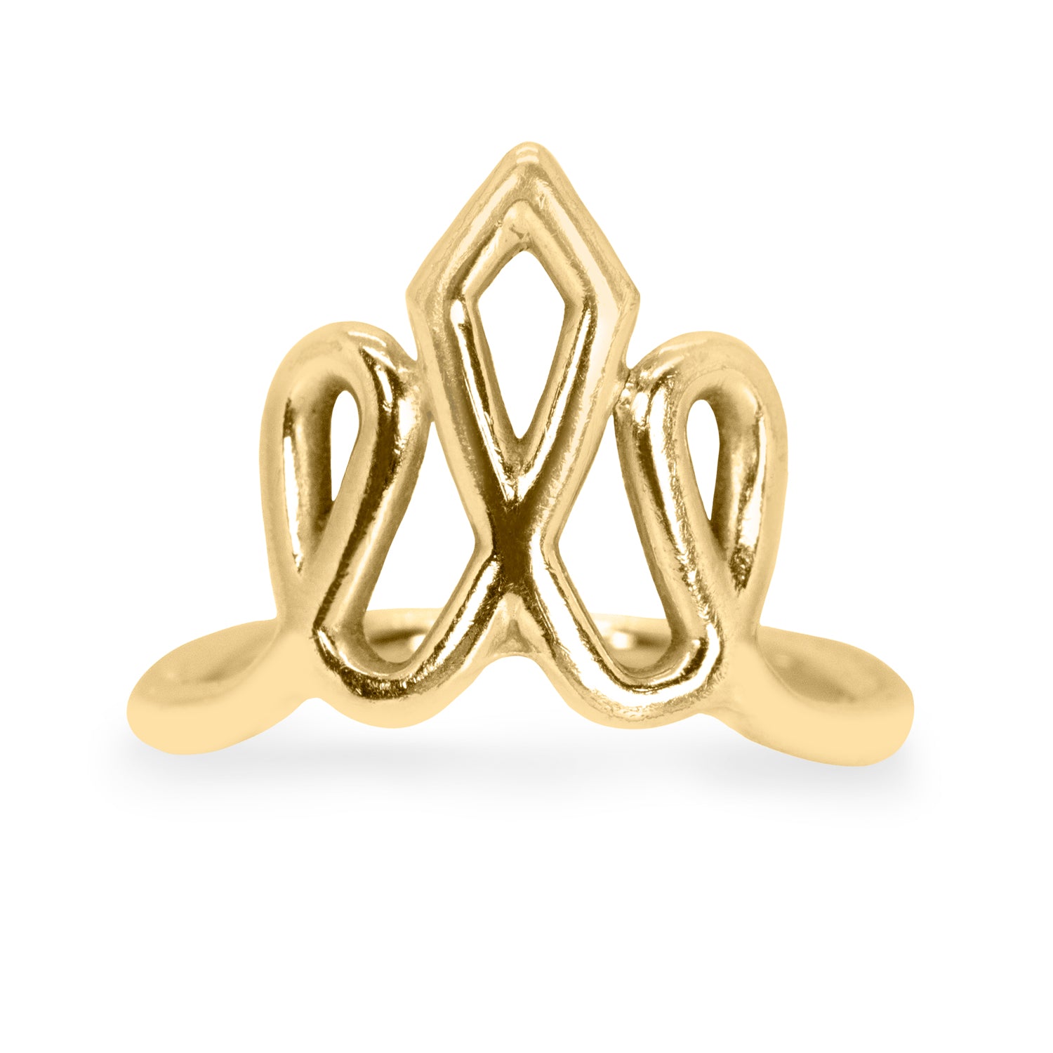 This captivating ring is the signature HOTCROWN ring that's inspired by the company logo. The crown represents royalty and elegance. It's a bold statement ring that embodies the aesthetics of flattering lines and visual symmetry.